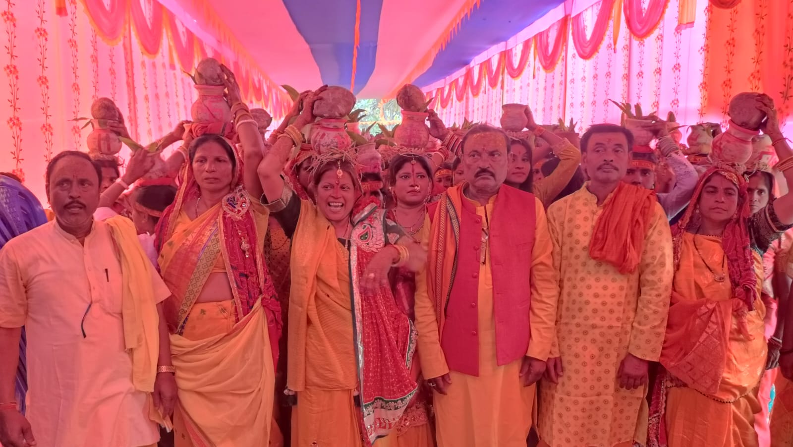 हनुमान मंदिर प्राण-प्रतिष्ठा को लेकर निकाली गई कलश शोभायात्रा
