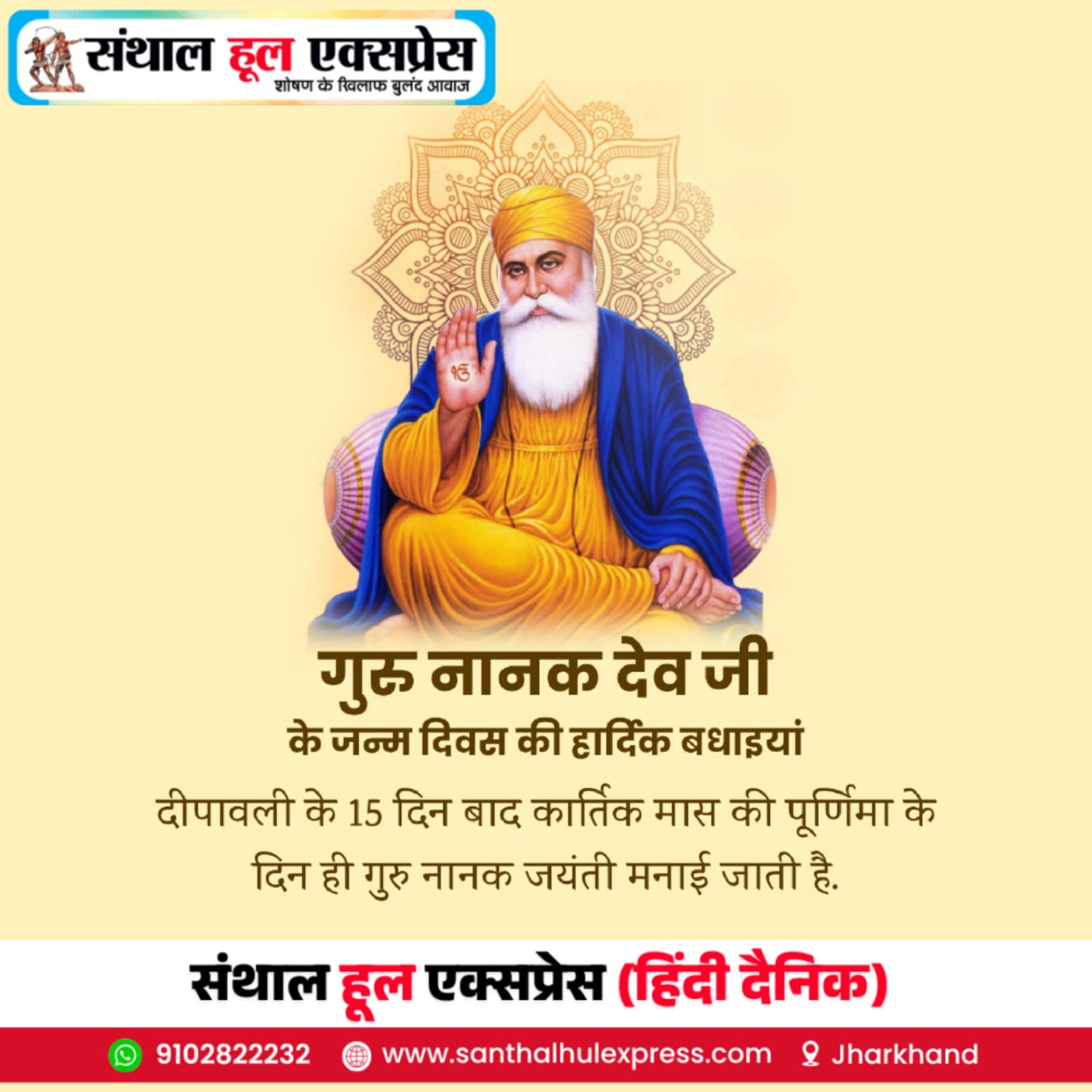 संथाल हूल एक्सप्रेस डेस्क। सिख धर्म के संस्थापक और विश्व को सत्य, प्रेम एवं सद्भाव का मार्ग दिखाने वाले गुरु नानक देव जी का प्रकाश पर्व पूरे देश और दुनिया में श्रद्धा और उत्साह के साथ मनाया जा रहा है। दीपावली के लगभग 15 दिन बाद आने वाली कार्तिक पूर्णिमा तिथि को यह पावन पर्व … Read more