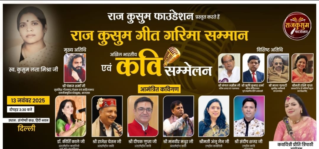 राज कुसुम फाउंडेशन संस्था के सौजन्य से आयोजित राज कुसुम गरिमा सम्मान एवं कवि सम्मेलन का आयोजन 13 नवंबर को