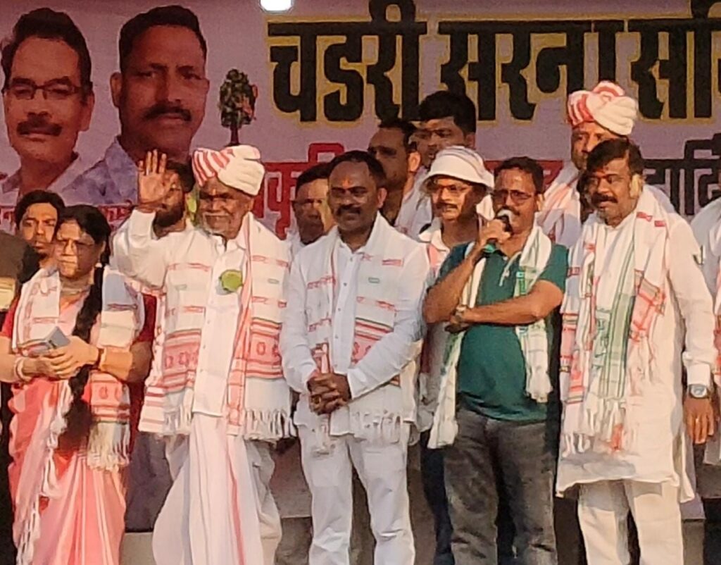 चडरी सरना समिति के मंच से लोगों को शुभकामनाएं दी
