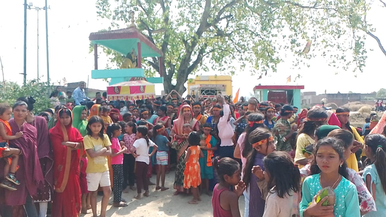 गोड्डा : नवरात्र प्रारंभ से ही विभिन्न प्रकार के पूजा अनुष्ठान का भी आयोजन किया जा रहा है। वहीं गोड्डा के मेहरमा प्रखंड अंतर्गत सोनाटीकर में हनुमान मंदिर प्रांण प्रतिष्ठा को लेकर भव्य कलश शोभायात्रा निकाली गई जिसमें कुल 151 कन्याओं ने भाग लिया। वहीं पांच किलोमीटर लंबी शोभायात्रा में जगह जगह पेयजल की व्यवस्था की गई थी।कलश शोभायात्रा सोनाटीकर से चौरा काली मंदिर स्थित तालाब पहुंची जहां कहलगांव से लाए जल को सभी श्रद्धालुओं ने अपने अपने कलश में भर कर घोरीचक पहुंचे तथा पुनः चौरा होते हुए संकट मोचन मंदिर सोनाटीकर पहुंची तेज धूप के बावजूद सभी श्रद्धालु भक्ती भाव में विभोर होकर भ्रमण कर रहे थे। वहीं कलश शोभायात्रा में बतौर मुख्य अतिथि मेहरमा दक्षिणी जिला परिषद सदस्या कदमी देवी, पूर्व मुखिया हेमंत मंडल पूर्व पंचायत समिति सदस्य निर्भय सिंह शामिल हुए। वहीं कलश शोभायात्रा की शुरुआत मंत्रों उच्चारण के साथ पंडित निर्मल मिश्रा के द्वारा कराया गया। कलश शोभायात्रा में मुख्य रूप से दिलिप कुमार, सोनू, संजय, विक्रम, मुकेश, रोहित, गौरव, प्रवीण, संतोष, सुरेश, पियूष, सिंटू, प्रमोद, जयकृष्ण सिंह के साथ साथ कई लोग मौजूद रहे।