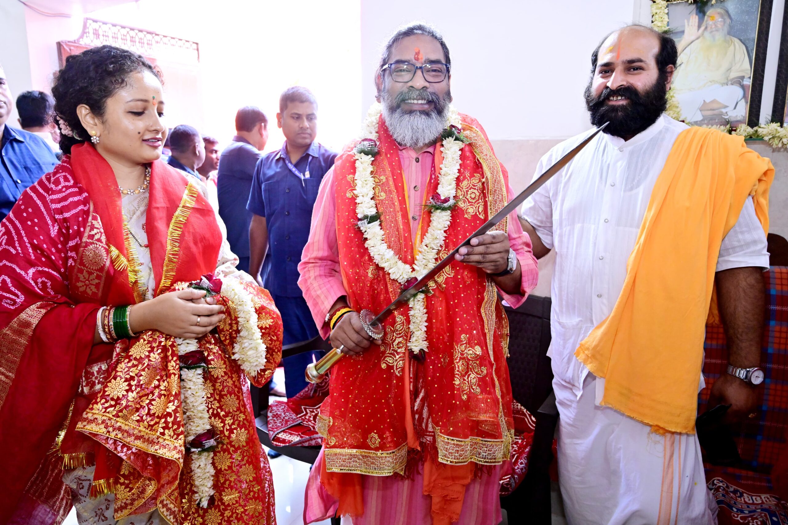 रांची: प्रभु श्री राम का जन्मोत्सव यानी कि रामनवमी का त्यौहार सनातन धर्म में एक विशेष महत्व रखता है आज पूरे देश में श्री राम की पूजा अर्चना भव्य रूप से की जा रही है। झारखंड की राजधानी रांची की रामनवमी भी आकर्षण का केंद्र होती है तमाम राम भक्तों के द्वारा शोभायात्रा निकालने की परम्परा है। इसी बीच प्रत्येक वर्ष की भांति इस वर्ष भी राज्य के मुख्यमंत्री हेमंत सोरेन अपनी धर्मपत्नी सह गांडेय विधायक कल्पना सोरेन के साथ निवारणपुर स्थित प्राचीन श्री राम जानकी तपोवन मंदिर पहुंचे जहां उन्होंने विधि विधान के अनुसार पूजा अर्चना किया।