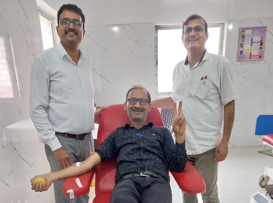 देवघर : झारखंड चिकित्सा एवं जन स्वास्थ्य कर्मचारी संघ के जिलाध्यक्ष सदर अस्पताल देवघर के प्रयोगशाला कक्ष प्रभारी मनोज कुमार मिश्र ने अपनी पुत्री आकांक्षा शांडिल्य के जन्मदिन पर रक्तदान किया। वो प्रत्येक वर्ष में तीन से चार बार अपने, पत्नी तथा बच्चों के जन्मदिन पर रक्तदान किया करते हैं। साथ ही उन्होंने आम जनता से भी अपने घर के किसी भी शुभ कार्य में रक्तदान करने का आव्हान किया है। उन्होंने कहा कि अभी भी लोग रक्तदान करने से डरते हैं उन्हें लगता है कि रक्तदान करने से कमजोर हो जाएंगे। एक स्वस्थ व्यक्ति को स्वस्थ रहने के लिए रक्तदान जरूर करना चाहिए, रक्तदान करने से हृदय रोग, मधुमेह, उच्च रक्तचाप जैसे कभी नहीं खत्म होने वाली बीमारियों से बचा जा सकता है। इस अवसर पर उनके साथ सदर अस्पताल के वरीय लैब तकनीशियन रवि रंजन सहित विश्व नाथ बक्शी सहित अन्य मौजूद थे