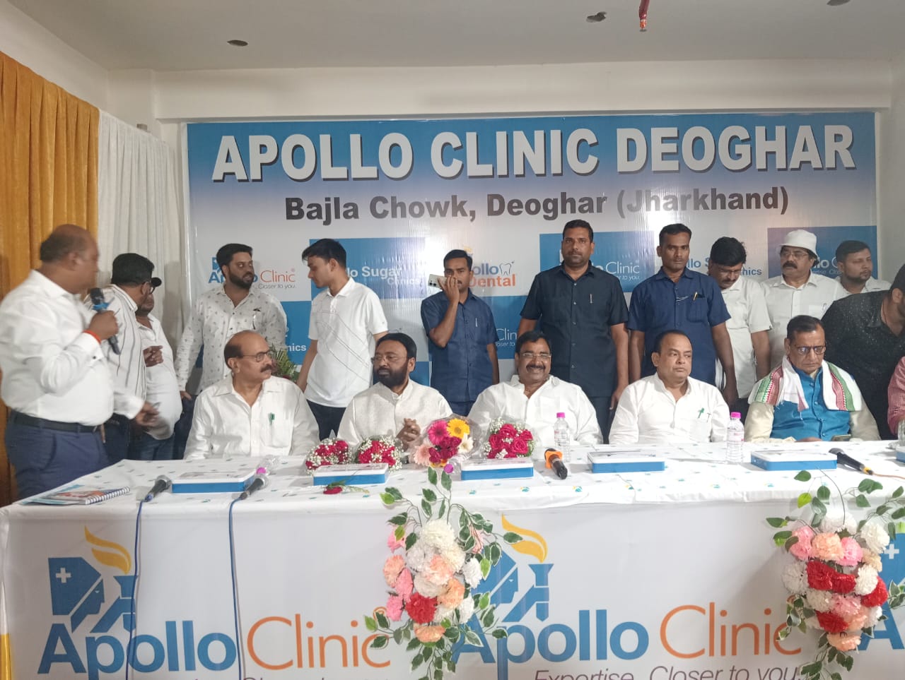 देवघर : नगर निगम क्षेत्र अंतर्गत बाजला चौक पर आधुनिक मशीनों और व्यवस्था से सुसज्जित अपोलो क्लिनिक का उद्धघाटन के अवसर पर सूबे के स्वास्थ्य मंत्री इरफ़ान अंसारी, श्रम मंत्री संजय यादव, विधायक सुरेश पासवान, सीएस डॉ युगल चौधरी, कांग्रेस जिला अध्यक्ष डॉ उदय प्रकाश मुख्य रूप से उपस्थित थे। उपस्थित सभी अतिथियों ने अपोलो के स्थानीय प्रतिनिधियों सहित प्रबन्धक को शुभकामनाएं दिया। मौके पर मंत्री संजय यादव ने कहा कि आज अपोलो के इस क्लिनिक का उद्धघाटन हुआ है में सभी को इसके लिए बधाई और शुभकामनाएं देता हूँ। अब इस क्लिनिक के माध्यम से बड़े से बड़े बीमारी का ईलाज सुगमता पूर्वक हो पाएगा।वहीं मंत्री श्री यादव ने कहा कि गरीबों का ईलाज रियायती दर पर हो यही प्रबन्धक से आग्रह होगा। वहीं स्वास्थ्य मंत्री इरफ़ान अंसारी ने कहा कि हम चाहते हैं कि देवघर मेडीकल का हब बने।नइसकी ओर एक कदम आज अपोलो ने बढ़ाया है में इसके लिए प्रबन्धक को शुभकामनाएं देता हूँ अपोलो यहां की जनता के लिए मिल का पत्थर साबित होगा। वहीं अपोलो क्लिनिक के एम डी श्रेयांश अग्रवाल ने कहा कि हम लोग अपोलो क्लिनिक में एक साथ बकेट ऑफ सर्विसेज प्रदान करेंगे। जिससे कंसल्टेंशन, डायग्नोस्टिक, हेल्थ चेक टू डायबिटीज केयर, डेंटिस्ट्री माइनर प्रोसिड्यूर एंड वैक्सीनेशन शामिल है। मौके पर कार्यक्रम व्यवस्थापक विनायक सिन्हा ने बताया कि अपोलो क्लिनिक झारखंड के तीसरा व संथाल का पहला क्लिनिक होगा जहां विश्वस्तरीय मेडिकल सुविधा उपलब्ध रहेगा। इस दौरान मौके पर डॉ तुसार प्रसार, डॉ श्रेयांश अग्रवाल, ओपोलो के मेम्बर्स के अलावे सैकड़ों लोग उपस्थित थे।