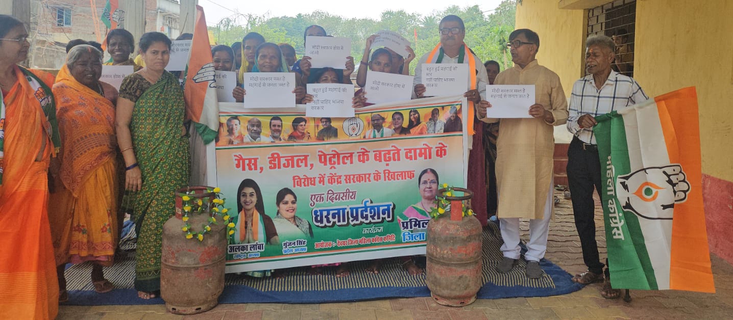 देवघर : जिला महिला कांग्रेस की अध्यक्ष श्रीमती प्रमिला देवी की अध्यक्षता में जसीडीह संथाली मोहल्ला (देवघर जिला) के वार्ड नंबर 1 में गैस, डीजल एवं पेट्रोल के बढ़ते दामों के विरोध में एक दिवसीय धरना कार्यक्रम का आयोजन किया गया। उक्त धरना कार्यक्रम में मुख्य अतिथि के रूप में देवघर जिला इंटक के जिला अध्यक्ष अनंत मिश्रा एवं झारखंड प्रदेश इंटक के प्रदेश सचिव अजय कुमार शामिल थे। धरना कार्यक्रम में अन्य कांग्रेस जनों में मनोहर विश्वकर्मा, रोजी खातून, रूबी खातून, नजमा खातून, लाडली देवी, खुशबू देवी, आशा देवी, रिंकी देवी, सीमा देवी, रूबी देवी, काजल देवी, उर्मिला देवी, माही देवी, रूबी देवी, सुषमा देवी, आरती देवी, नीलम देवी, लक्ष्मी देवी, पुष्पा देवी के अलावा कई अन्य ग्रामीण महिलाएं भी शामिल थीं। उक्त अवसर पर धरना को संबोधित करते हुए झारखंड प्रदेश इंटक के प्रदेश सचिव अजय कुमार ने कहा कि गैस डीजल एवं पेट्रोल की कीमतों में लगातार वृद्धि करना इस बात का प्रतीक है कि निम्न एवं मध्यम वर्ग के लोगों की आर्थिक परेशानियों से मोदी सरकार को कुछ भी लेना-देना नहीं है। अंतरराष्ट्रीय बाजार में कच्चे तेल की कीमत में लगातार गिरावट आने के बावजूद भी केंद्र सरकार डीजल एवं पेट्रोल की कीमतें कम करने के बजाय बढ़ती ही जा रही है। देवघर जिला इंटक के जिला अध्यक्ष अनंत मिश्रा ने कहा कि एक तरफ अंतरराष्ट्रीय बाजार में कच्चे तेल की कीमत का लगातार लुढ़कना और दूसरी और मोदी सरकार द्वारा पेट्रोल डीजल की कीमतों को न घटाना इस बात का प्रत्यक्ष प्रमाण है कि मोदी सरकार जनता को लूट रही है। देवघर जिला महिला कांग्रेस की अध्यक्ष प्रमिला देवी ने केंद्र सरकार से आम जनता की आर्थिक कठिनाइयों को देखते हुए अविलंब गैस, डीजल एवं पेट्रोल की कीमत घटाने की मांग की है।