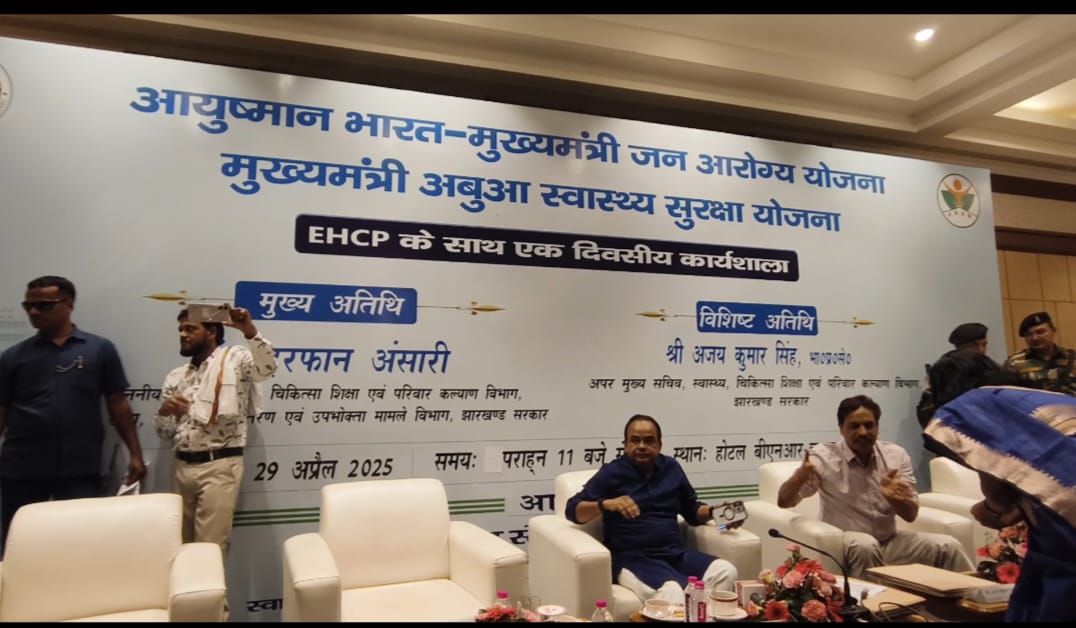 राँची:आयुष्मान भारत-मुख्यमंत्री जन आरोग्य योजना के तहत स्वास्थ्य सेवाओं को और बेहतर बनाने के लिए एक दिवसीय कार्यशाला का आयोजन बीआर चाणक्या मे आयोजित की गई थी जिसमे मुख्य अतिथि:**