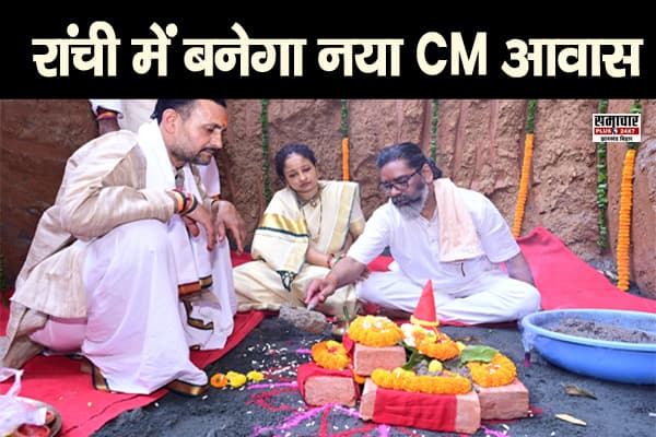 रांची: झारखंड के मुख्यमंत्री हेमंत सोरेन ने सोमवार को अपनी पत्नी और विधायक कल्पना सोरेन के साथ मिलकर मुख्यमंत्री आवासीय परिसर में नए मुख्यमंत्री आवास के निर्माण की आधारशिला रखी। इस अवसर पर पूर्ण विधि-विधान से पूजा-अर्चना की गई।