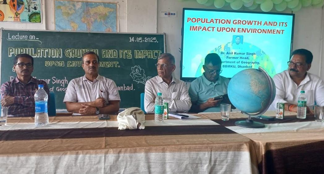 हजारीबाग : विभावि के भूगोल विभाग में चांसलर्स लेक्चर सीरीज के तहत जनसंख्या वृद्धि का पर्यावरण पर प्रभाव विषय पर व्याख्यान का आयोजन बुधवार को किया गया। इसमें बतौर मुख्य वक्ता विनोद बिहारी महतो कोयलांचल यूनिवर्सिटी, धनबाद के भूगोल विभाग के पूर्व विभागाध्यक्ष डॉ. अनिल कुमार सिंह ने व्याख्यान प्रस्तुत किया। कार्यक्रम की शुरुआत मे भूगोल विभागाध्यक्ष डॉ. सरोज कुमार सिंह ने विषय प्रवेश एवं स्वागत अभिभाषण द्वारा किया। व्याख्यान के दौरान डॉ. अनिल कु. सिंह ने वर्तमान समय में तीव्र गति से बढ़ रही जनसंख्या वृद्धि की प्रवृत्ति का वैश्विक एवं भारत के परिप्रेक्ष्य में चर्चा किया। उन्होंने बढ़ती हुई जनसंख्या का प्राकृतिक संसाधनों पर बढ़ रहे दबाव पर कहा कि विशाल जनसंख्या की आवश्यकताओं की पूर्ति हेतु संसाधनों की बेतहाशा दोहन से पर्यावरणीय ह्रास की स्थिति बन रही है। साथ ही उन्होंने बताया कि बढ़ती हुई जनसंख्या के कारण जल संकट, खाद्यान्न संकट, जैव विविधता का ह्रास, वन ह्रास, जलवायु परिवर्तन, मृदा क्षरण जैसे गंभीर संकट की स्थिति उत्पन्न हो रही है। उन्होंने जनसंख्या वृद्धि के नियंत्रण के लिए विभिन्न उपायों जैसे रोजगार, शिक्षा, सरकारी नीतियाँ, जन जागरूकता पर जोर दिया। उक्त मौके पर पूर्व विभागाध्यक्ष डॉ. ओमप्रकाश महतो, डा प्रदीप कुमार सिंह, पूर्व भूगोल विभागाध्यक्ष मार्खम कॉलेज आफ कामर्स, डॉ. ए. के. रामानुज, विभागाध्यक्ष, बरही कॉलेज, शोधार्थीगण एवं समसत्र 4 एवं 2 के विद्यार्थी अच्छी संख्या में उपस्थित थे। कार्यक्रम का संचालन शोधार्थी परीक्षित तथा धन्यवाद ज्ञापन तूलिका राज वर्मा द्वारा किया गया।