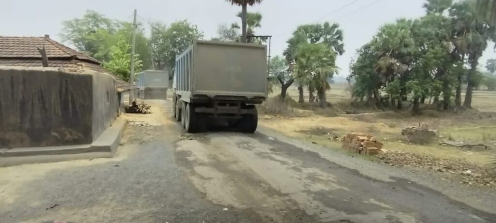चलाने पर रोक का बोर्ड लगे होने के वाबजूद ग्रामीण पथ पर धड़ल्ले से भारी वाहनों चलाना बदस्तूर जारी है । ग्रामीणों ने दौड़ते हाईवा के धुलकण से परेशान होने के कारण वाहन को रोक दिया। इस क्रम में वाहन वालों से ग्रामीणों की वार्ता के पश्चात सड़क पर पानी छिड़काव कराया गया। तत्पश्चात हाईवा का परिचालन होने दिया गया। ग्रामीण पाउल किस्कू, मुन्नू हांसदा व अन्य ने बताया कि इस ग्रामीण सड़क से होकर प्रतिदिन हाईवा गर्दी लोडकर बिना ढके हुए ले जाता है। जिससे उड़ने वाले धुलकण से यहां के लोग परेशान हैं। जबकि ग्रामीण सड़क पर भारी वाहनों का चलाना वर्जित है। इसके वाबजूद इस सड़क से प्रतिदिन सैंकड़ों की संख्या में लोडेड हाईवा चलता है। जिससे गांव के समीप एक पुलिया क्षतिग्रस्त हो गया है। उक्त पुलिया पर ही गर्दी डालकर रोजाना हाईवा चलाया जा रहा है। लोगों ने ग्रामीण सड़क पर रोजाना सुबह शाम पानी छीडकाव करने की मांग की है। इसके साथ ही क्षतिग्रस्त पुलिया की मरम्मती कराने व सप्ताहिक हाट के चलते गुरुवार को हाइवा नहीं चलाने की मांग की है।