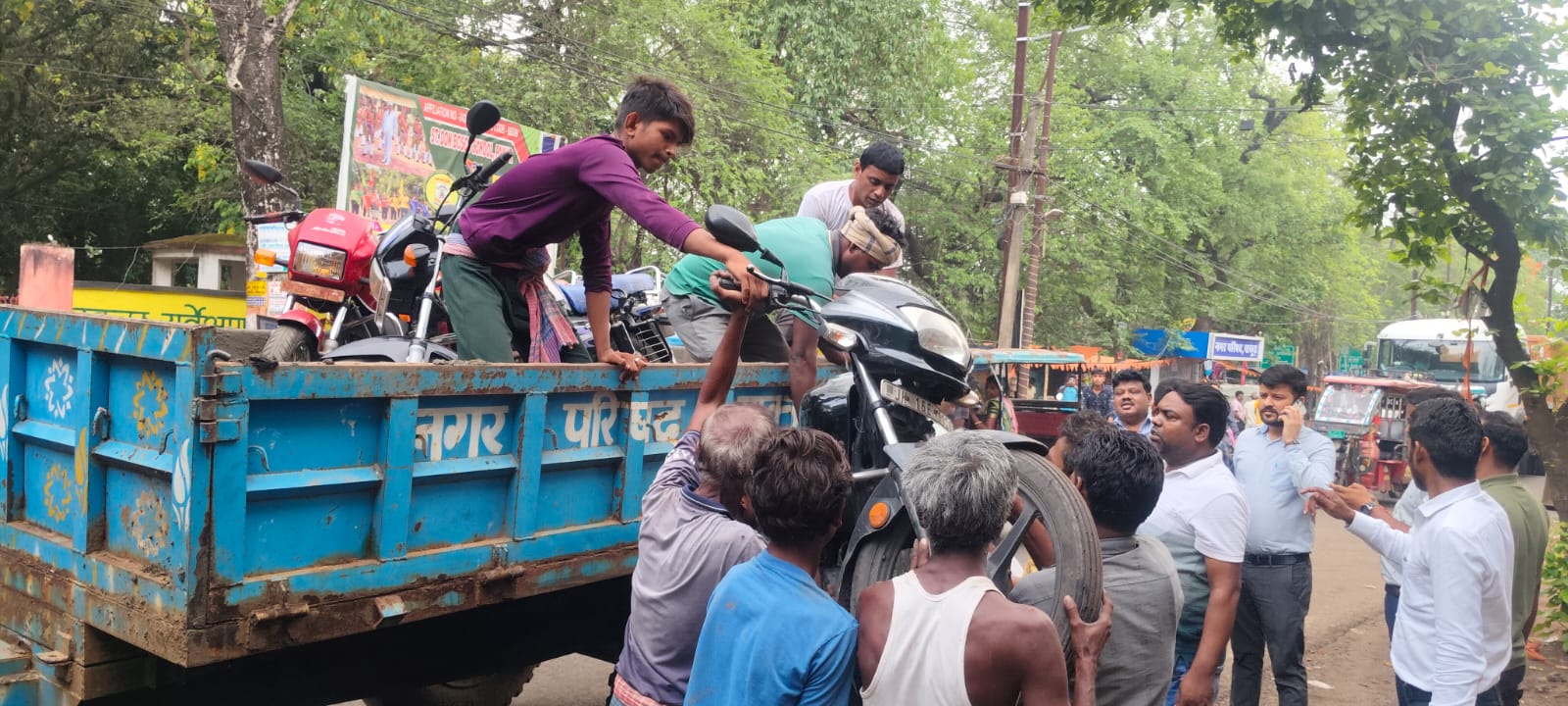 पाकुड़ नगर परिषद क्षेत्र में ट्रैफिक व्यवस्था को सुचारू बनाए रखने को लेकर जिला परिवहन पदाधिकारी श्री संजय पीएम कुजुर एवं नगर प्रशासक के संयुक्त नेतृत्व में विशेष अभियान चलाया गया। अभियान के तहत कोर्ट परिसर के किनारे अवैध रूप से खड़े दोपहिया वाहनों को टोइंग गाड़ी की सहायता से नगर थाना लाया गया।