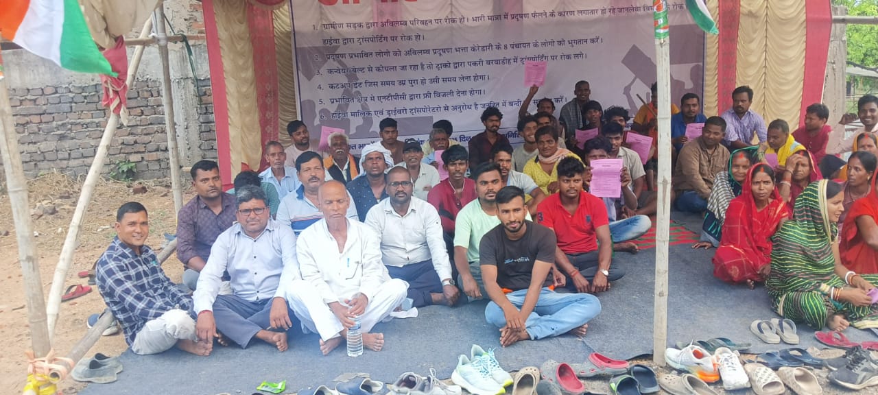 हजारीबाग : बड़कागांव हजारीबाग मुख्य सड़क 13 माइल के पास बुधवार को बड़कागांव प्रखंड कांग्रेस पार्टी के नेतृत्व में तथा पूर्व कांग्रेस पार्टी के प्रखंड अध्यक्ष सह 20 सूत्री प्रखंड उपाध्यक्ष विशेश्वर नाथ चौबे के अध्यक्षता में एनटीपीसी के तानाशाही रवैया तथा वादा खिलाफी के विरुद्ध अनिश्चितकालीन धरना पर बैठने से कोयला ट्रांसपोर्टिंग बंद हुआ। आंदोलनकारीयों का आरोप है कि एनटीपीसी कंपनी ने रैयतों को ठगने कि काम की है, वहीं रैयतों ने आरोप लगाया कि हम लोग को बहुत तरह के सपना दिखाकर कंपनी ठेंगा दिखाने के काम की है। बड़कागांव प्रखंड कांग्रेस कमेटी व स्थानीय रैयत का मांग है कि ग्रामीण सड़क पर अभिलंब परिवहन व कोयला ढुलाई बंद हो, कंपनी से होने वाली प्रदूषण से फैलने वाली बीमारियों पर रोक लगे, प्रदूषण प्रभावित लोगों को अभिलंब प्रदूषण भत्ता दें, कन्वेयर बेल्ट से कोयला ढुलाई हो रहा हो तो हाईवा से कोयला ढुलाई बंद हो, कट ऑफ डेट जिस समय उम्र पूरा हो उसी समय देना होगा, प्रभावित क्षेत्र में एनटीपीसी द्वारा फ्री बिजली देना होगा। वहीं हाईवा मालिक व कंपनी के पदाधिकारी ने बताया कि हाईवे से कोयला ढुलाई नहीं होने से कंपनी को करोड़ों रुपए के नुकसान हुई तथा हाईवा मालिक बेरोजगारी की नौबत पर है। मौके पर मुख्य रूप से पूर्व कांग्रेस प्रखंड अध्यक्ष सह 20 सूत्री प्रखंड उपाध्यक्ष विशेश्वर नाथ चौबे, आनंद साव, डुभन साव, उप मुखिया प्रतिनिधि सुरेंद्र साव उर्फ बोलबम साव इत्यादि सैकड़ों महिला एवं पुरुष शामिल थें।