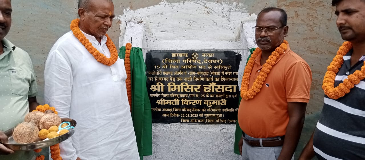 देवघर : पालोजोरी प्रखंड अंतर्गत जिला परिषद 15 वीं विंत आयोग मद से स्वीकृत ग्राम बगदाहा सोखा नरैश राय के द्वार से बरगद पेड़ तक नाली निर्माण कार्य का किया शिलान्यास। कार्य का शिलान्यास विधिवत कार्यक्रम फिता काट नारियल फोड़ कर किया गया। मौके पर मुखिया गोलक बिहारी यादव जिला परिषद सदस्य मिशिल हांसदा ने कहा कि सरकार के माध्यम से न्यूनतम राशि जिला परिषद सदस्यों को उपलब्ध कराई जा रही है। ग्रामीणों की सुविधाओं के योजना मुहैया करना हमारी प्राथमिकता है। जिससे काफी कठिनाई का सामना करते हुए छोटी छोटी योजनाओं का चयन कर प्रार्थमिकता के अनुसार योजनाओं का चयन उस धरातल पर उतारने का प्रयास किया जा रहा है जिससे जमीनी स्तर के लोगों को लाभ मिलें। शिलान्यास होने से ग्रामीणों में खुशी देखी गई। मौके पर गोपाल राय, भादु राय, मानिक मंडल, प्ररेश मंडल, गणपत यादव, तपन मंडल इस कार्यक्रम के दौरान काफी लोग मोजूद थे।