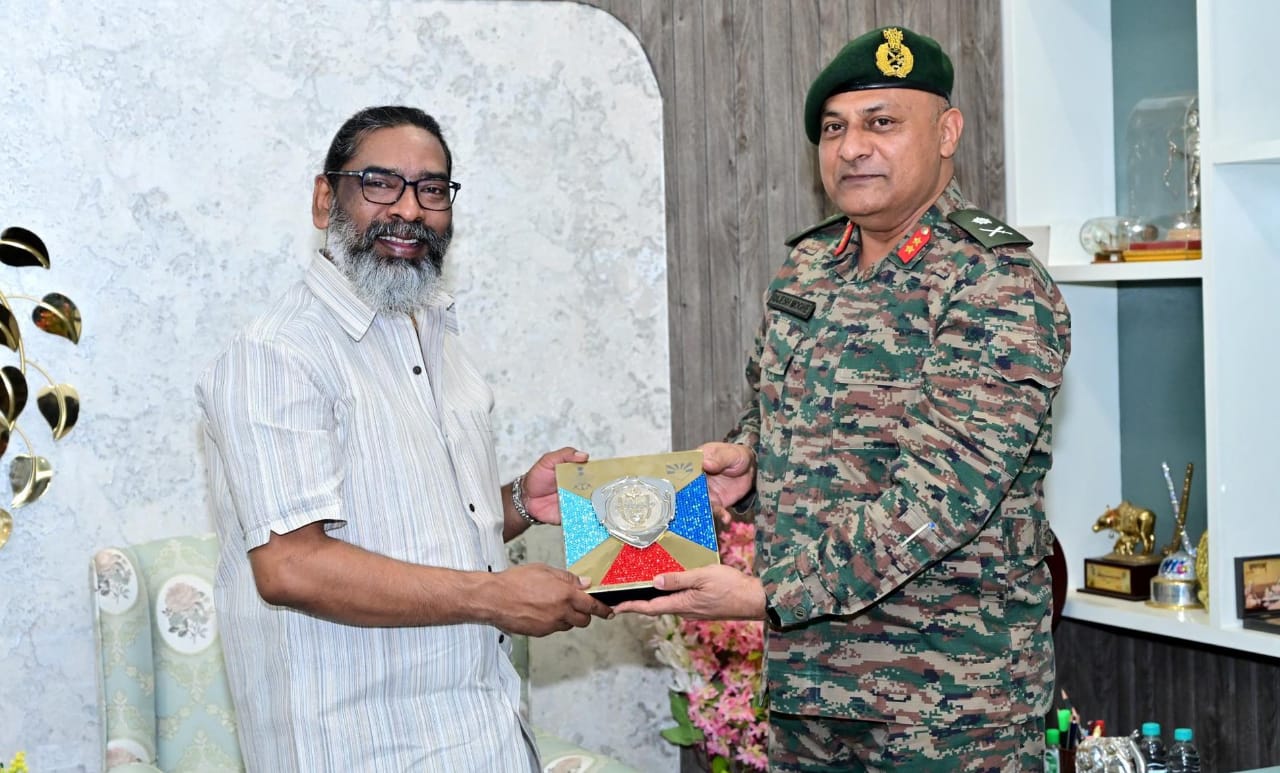 राँची। झारखंड के मुख्यमंत्री हेमन्त सोरेन की मुलाकात ईस्टर्न कमांड मुख्यालय के मेजर जनरल अरुण राजेश मोगे और 23 इन्फैंट्री डिवीजन के जीओसी मेजर जनरल परमवीर सिंह डागर से हुई। इस महत्वपूर्ण भेंट में सुरक्षा और सामरिक विषयों पर चर्चा के साथ-साथ आगामी डूरंड कप फुटबॉल प्रतियोगिता के संदर्भ में आमंत्रण भी शामिल रहा।