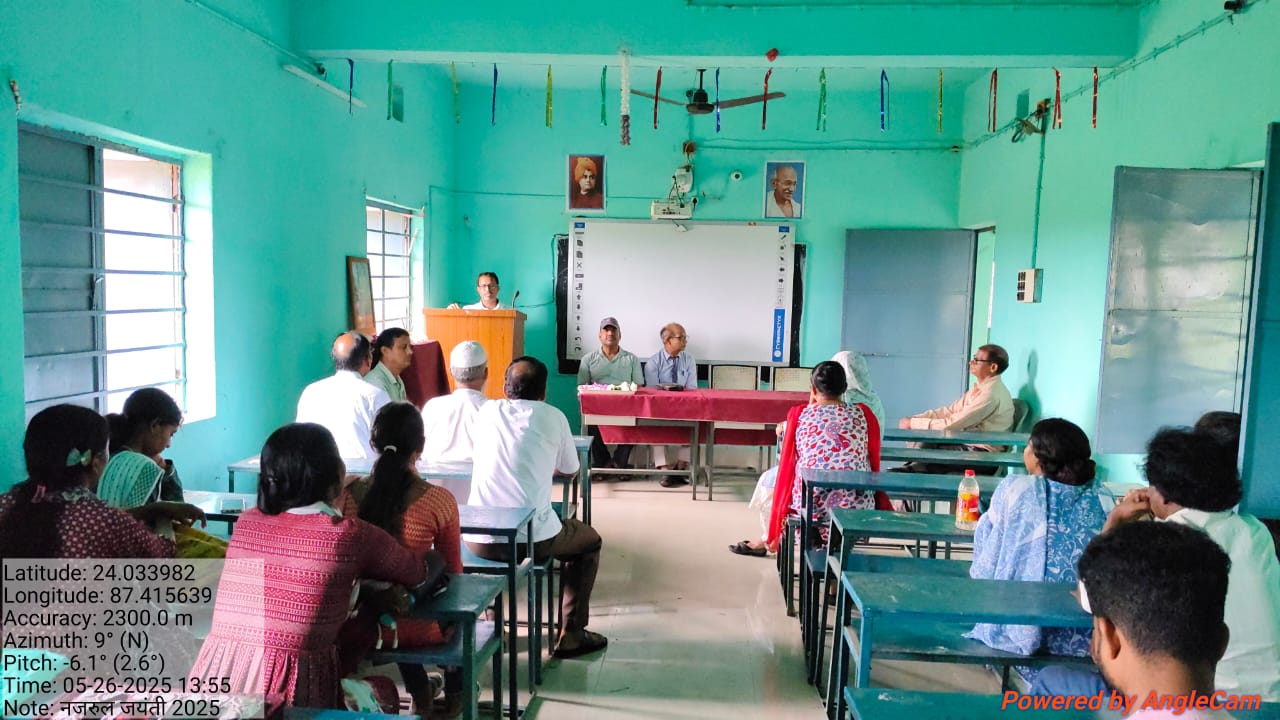 रानीश्वर : प्रभारी प्राचार्य प्रोफेसर नव कुमार पाल की अध्यक्षता मे मयूराक्षी ग्रामीण महाविद्यालय रानीश्वर मे सोमवार, विद्रोही कवि काजी नजरुल इश्लाम की 126 वा जयंती मनाई गयी। इस अवसर पर प्रभारी प्राचार्य प्रोफेसर नब कुमार पाल ने सर्वप्रथम फोटो पर पुष्प अर्पण किया। इसके साथ ही सभी शिक्षक गण सभी कर्मचारी तथा सभी स्टूडेंट्स ने पुष्प अर्पण किया। इसके साथ ही कार्यक्रम की शुरुआत की गई। प्रभारी प्राचार्य प्रोफेसर नव कुमार पाल ने देश प्रेम के प्रति भक्ति के महत्व को रखा। प्रोफेसर आशीष कुमार मंडल ने नजरुल गीति प्रस्तुत किया, साथ ही स्टूडेंट्स मंगली गोराई, इंद्रनील पाल, सरूपा रक्षित, कवि नजरुल इस्लाम के बारे में विचार रखें। कवि नजरुल इश्लाम की विद्रोही कविता आवृत्ति प्रोफेसर आशीष मंडल ने प्रस्तुत किया, प्रोफेसर बिभास चंद्र झा ने कवि नजरुल के बारे मे विस्तृत रूप से विचार दिया हमें महापुरुषो के विचार को अपने जीवन मे अमल करना चाहिए। प्रोफेसर विजय कुमार राणा ने संस्कृत मे इसकी व्याख्या की, आई क्यू ए सी को ऑर्डिनेटर प्रोफेसर आबिद राजा ने अपने विचार दिया, लिपिक अजय घोष ने कुली मजूर कविता का आवृत्ति प्रस्तुत किया, महिला कर्मचारी सरूपा रक्षित ने कविता पाठ प्रस्तुत किया साथ ही मंच संचालन प्रोफेसर काजल मंडल तथा धन्यवाद ज्ञापन प्रोफेसर आनंद गोपाल घोष ने किया। इस अवसर पर सभी शिक्षक शिक्षकेतर कर्मचारी उपस्थित रहें। इसकी जानकारी मीडिया प्रभारी डॉ रूपम कुमारी ने दी।