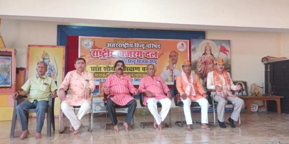 गिरिडीह : शहर के बरगंडा स्थित सरस्वती शिशु विद्या मंदिर में आयोजित अंतराष्ट्रीय हिंदू परिषद के गिरिडीह शाखा का आठ दिवसीय प्रान्त प्रशिक्षण का समापन रविवार वीर हिंदू, विजेता हिंदू और फर्स्ट हिंदू के नारों के साथ हुआ। कार्यक्रम में अंतराष्ट्रीय हिंदू परिषद के प्रान्त पदाधिकारी सह अधिवक्ता नित्यानंद प्रसाद, मुरारी मिश्रा, दिलीप वैध, कन्हैया लाल, रविशंकर पांडेय, अश्वनी भदानी, प्रो विनीता कुमारी बतौर अतिथि शामिल हुई। वही प्रशिक्षक के रूप मे शुभम झा, देव जी और गौरव कुमार थे। इस मौके पर युवाओं ने शौर्य और पराक्रम का प्रदर्शन करने के साथ ही लाठिया भांजी। इस दौरान युवाओं ने सूर्य प्रणाम के साथ शारीरिक चुस्ती से जुडा व्ययाम भी दिखाया। मौके पर प्रशिक्षण प्राप्त करने वाले युवाओं को संबोधित करते हुए अतिथियों ने कहा कि फर्स्ट हिंदू, वीर हिंदू और विजेता हिंदू का नारा देने का कारण है अब भी भारत में सनातन को कमजोर किया जा रहा है। सनातन और भारतीय संस्कृति से जुड़े युवा किसी के द्वारा संस्कृती का अपमान करने पर विरोध करते है तो उनकी हत्या कर दी जाती है। ऐसे में इन युवाओ को संस्कृति की रक्षा के लिए शारीरिक रूप से मजबूत बनाने के उद्देश्य से युवाओं को प्रशिक्षण दिया जा रहा है।