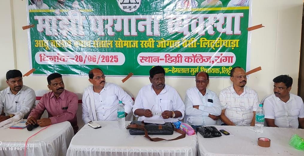 लिट्टीपाड़ा प्रखंड के रांगा स्थित डिग्री कॉलेज परिसर में शुक्रवार को मांझी परगना व्यवस्था के तहत आतु चालाव बनाव संताल सोमाज रखी जोगाव बैसी सभा का आयोजन किया गया। सभा की अध्यक्षता लिट्टीपाड़ा विधायक हेमलाल मुर्मू ने की। कार्यक्रम में प्रखंड के सभी 275 गांवों के मांझी, गुड़ित, नायकी, परगनात एवं संताल समाज के बुद्धिजीवी शामिल हुए।