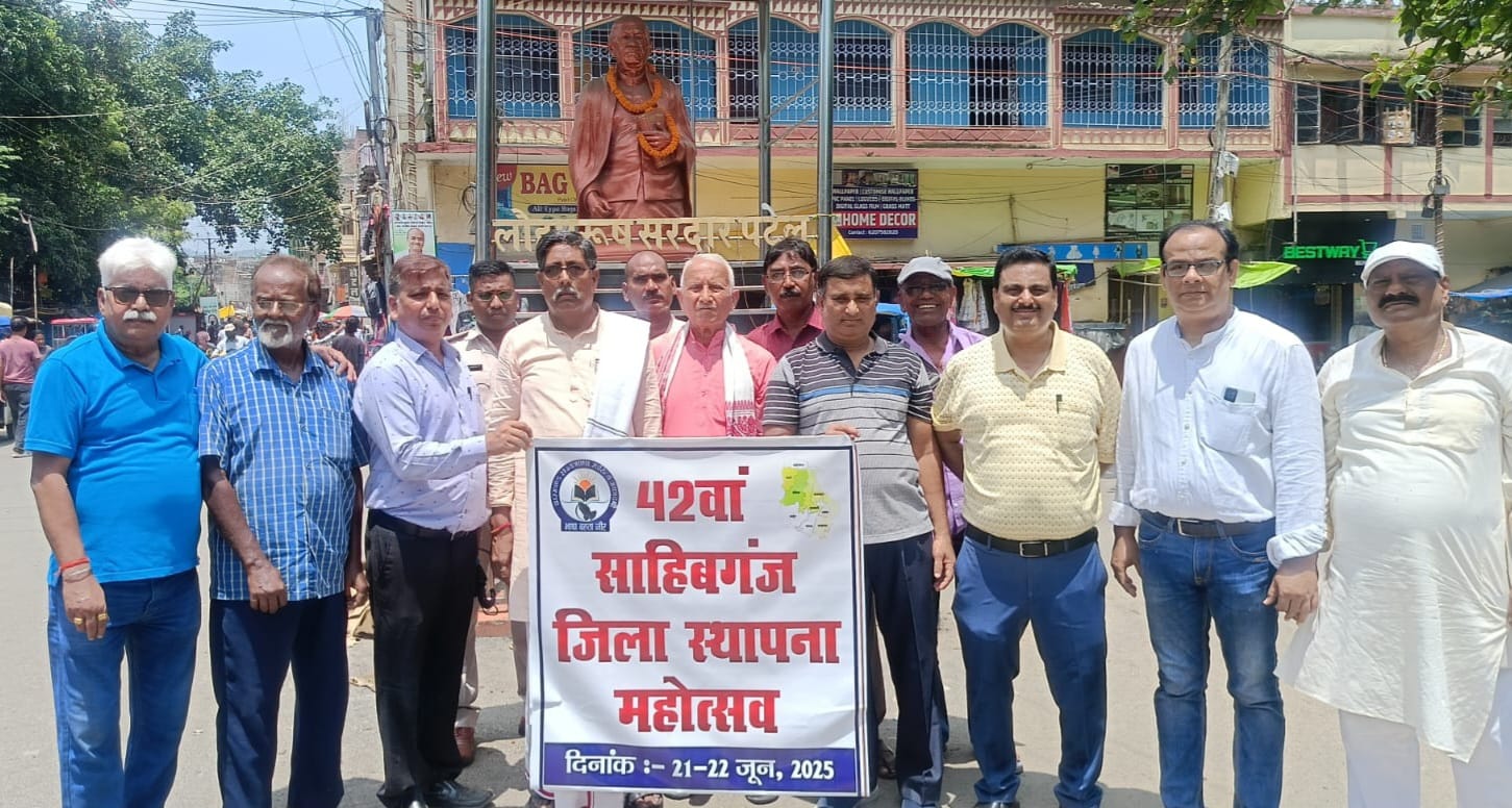 झारखंड राजभाषा साहित्य अकादमी एवं मनोरंजन भोजपुरी साहित्य परिषद के तत्वावधान में पहली बार मनाए जा रहे 42वां साहिबगंज ज़िला स्थापना दिवस का दो दिवसीय कार्यक्रम शनिवार को शहर के विभिन्न स्थानों पर स्थापित महापुरुषों की प्रतिमा पर माल्यार्पण के साथ शुरू हुआ। इसकी शुरुआत बघवा कुंआ स्थित भूतपूर्व सैनिक संघ के जिला अध्यक्ष तेज नारायण राय के नेतृत्व में शहीदों को माल्यार्पण के साथ हुई। इसके उपरांत महात्मा गांधी, स्वामी विवेकानंद, डॉ भीमराव अंबेडकर, सरदार पटेल, वीर कुंवर सिंह, सिदो-कान्हू, भगत सिंह, सुभाष चंद्र बोस व अन्य महापुरुषों की प्रतिमा पर माल्यार्पण किया गया। वहीं सिदो-कान्हू स्टेडियम में साहिबगंज, प्रकृति पर्यावरण और पर्यटन विषय पर विचार गोष्ठी हुई। मौके पर आयोजन समिति संयोजक डॉ सचिदानंद, चैंबर अध्यक्ष राजेश अग्रवाल, कालिदास पाठक, अनवर अली, संतोष सिंह, जाहिद खान, अनूप लाल हरि, विभूति पांडेय सहित दर्जनों लोग मौजूद थे।