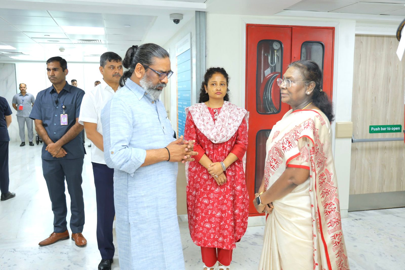 राष्ट्रपति ने अस्पताल में शिबू सोरेन के झारखंड के मुख्यमंत्री हेमन्त सोरेन और विधायक कल्पना सोरेन से मुलाकात कर उनके स्वास्थ्य तथा उपचार से जुड़ी विस्तृत जानकारी प्राप्त की।