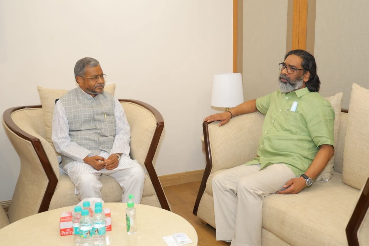 नई दिल्ली/रांची :झारखंड के मुख्यमंत्री हेमंत सोरेन और नेता प्रतिपक्ष बाबूलाल मरांडी की दिल्ली में मुलाकात हुई। इस दौरान दोनों नेताओं ने झारखंड मुक्ति मोर्चा के संरक्षक और पूर्व मुख्यमंत्री शिबू सोरेन के स्वास्थ्य की जानकारी ली और उनके शीघ्र स्वस्थ होने की कामना की।