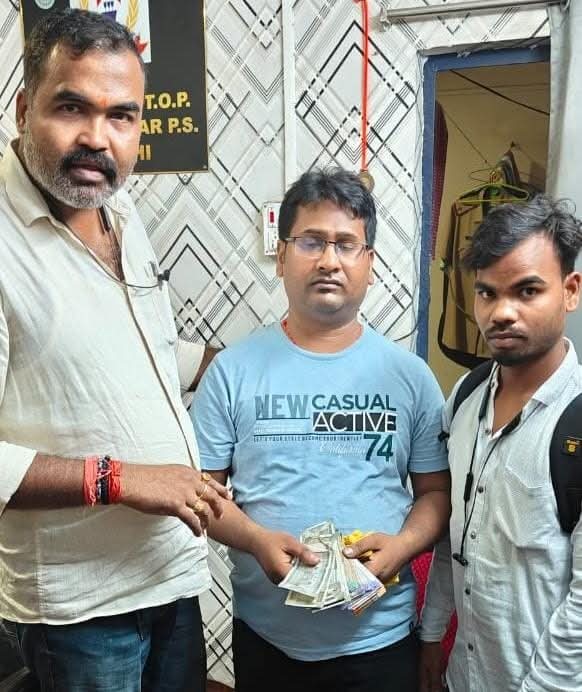 रांची : के कांटा टोली स्थित खादगढ़ा बस स्टैंड पर एक यात्री का बैग गुम हो गया, जिसमें लगभग 80 हजार रुपये नकद और जरूरी दस्तावेज थे। बैग खो जाने से घबराया यात्री तत्काल खादगढ़ा टीओपी पहुंचा और वहां तैनात पुलिसकर्मियों को मामले की जानकारी दी। मामले की गंभीरता को समझते हुए खादगढ़ा टीओपी में पदस्थापित पुलिसकर्मी भीम सिंह ने सूझबूझ और तत्परता से कार्रवाई शुरू की। उन्होंने न केवल बैग को ढूंढ निकाला, बल्कि बैग में रखे सारे कागजात और पूरे 80,000 भी सुरक्षित यात्री को लौटा दिए। बैग वापस पाकर यात्री भावुक हो गए और पुलिस की ईमानदारी तथा तत्परता के लिए धन्यवाद जताया। इसके बाद वे निश्चिंत होकर अपनी यात्रा पर रवाना हो गए। इस घटना ने रांची पुलिस की सकारात्मक छवि को और मजबूत किया है। स्थानीय लोगों और यात्रियों ने भी पुलिसकर्मी की ईमानदारी की सराहना की है।