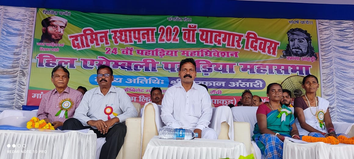 अखिल भारतीय आदिम जनजाति विकास समिति के बैनर तले मांझी विजय मरांडी स्टेडियम में दामिन-ई-कोह का 202वां स्थापना दिवस व 24वां वार्षिक पहाड़िया महाधिवेशन धूमधाम से मनाया गया। कार्यक्रम का आयोजन हिल एसेंबली पहाड़िया महासभा के तत्वावधान में किया गया। समारोह का उद्घाटन मुख्य अतिथि रामकुमार पहाड़िया, बैजनाथ पहाड़िया, बेसागी पहाड़िन, सुरजी पहाड़िन, शिवचरण मालतो, सिमोन मालतो, महावीर मड़ैया, डेविड मालतो समेत कई गणमान्य अतिथियों ने संयुक्त रूप से दीप प्रज्वलित कर किया। मंच संचालन शिवचरण मालतो ने किया।
