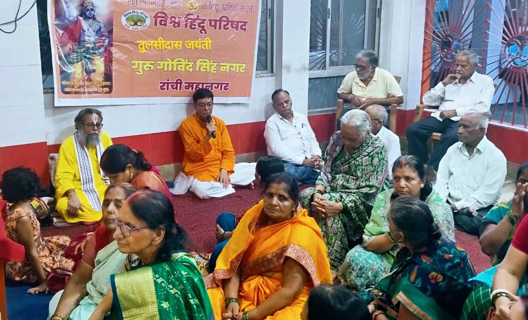 विश्व हिन्दू परिषद, गुरु गोविन्द सिंह नगर, राँची द्वारा गुरुवार को हेसल अखाड़ा स्थित श्री हनुमान मंदिर में संत शिरोमणि गोस्वामी तुलसीदास जी की 528वीं जयंती श्रद्धा व भक्ति भाव से मनाई गई। कार्यक्रम की शुरुआत सामूहिक प्रणवोच्चार व विजय महामंत्र के साथ हुई। इसके पश्चात तुलसीदास जी के चित्र पर माल्यार्पण व दीप प्रज्ज्वलन किया गया।