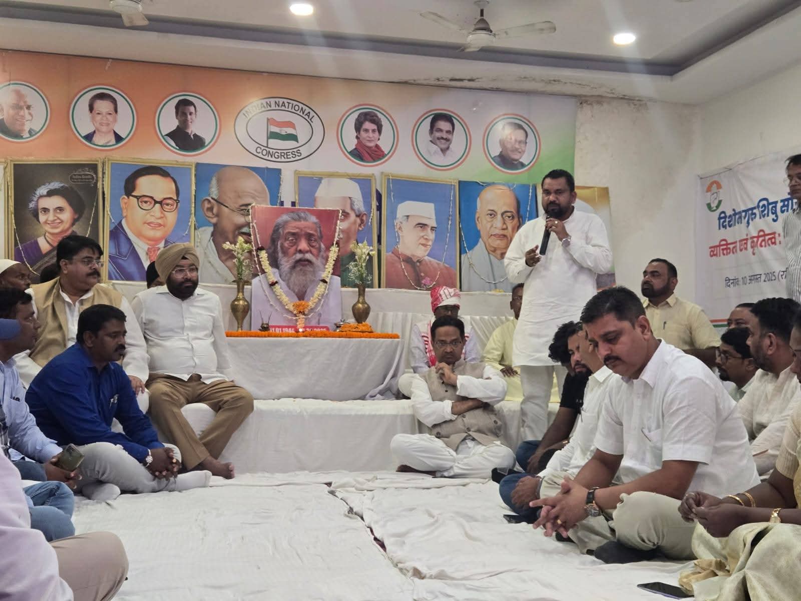 सर्वप्रथम दिवंगत आत्मा की शांति के लिए एक सर्वधर्म प्रार्थना सभा का आयोजन किया गया, जिसमें विभिन्न धर्मों के धर्म गुरुओं ने एक साथ मिलकर सामूहिक रूप से प्रार्थना कर श्रद्धांजलि देते हुए उनकी आत्मा के शांति के लिए प्रार्थना किया। उनके व्यक्तित्व एवं कृतित्व पर परिचर्चा में इतिहासकार डॉ. इलियास मजीद ने गुरुजी की जीवनी पर विस्तृत रूप से प्रकाश डाला। इस अवसर पर उपस्थित कांग्रेस कार्यकर्ताओं और नेताओं ने शिबू सोरेन जी के व्यक्तित्व, उनके संघर्षों और झारखंड राज्य के निर्माण में उनके अतुलनीय योगदान पर विस्तार से चर्चा की। वक्ताओं ने उन्हें एक दूरदर्शी नेता, गरीबों और आदिवासियों के मसीहा और झारखंड के सच्चे जननायक के रूप में याद किया। इस श्रद्धांजलि समारोह में मुख्य रूप से शहजादा अनवर, जिला पर्यवेक्षक, राजीव रंजन प्रसाद, अध्यक्ष गौ सेवा आयोग, ज्योति सिंह मथारू , उपाध्यक्ष राज्य अल्पसंख्यक आयोग, राजीव रंजन राजू, चंद्र रश्मि पिंगुआ, रमेश पांडे, शहीद अहमद, माधव कच्छप विनोद सिंह, अमरजीत सरदार, संतोष कुमार, शैलेन्द्र सिंह, सहाबीर लोहरा, नंद किशोर चंदेल, विजय टोप्पो, संजर खान, अख्तर अंसारी, हैदर अंसारी, रिज़वान अंसारी, अब्दुस सलाम, संजय सरैया, ख़रगेश चंद महतो एवं ग्रामीण कमिटी के अन्य नेता एबं कार्यकर्तागण उपस्थित थे। कार्यक्रम के अंत में इलेक्ट्रॉनिक पर्दे पर राहुल गांधी द्वारा निर्वाचन आयोग का वोट चोरी का खुलासा से संबंधित वीडियो प्रसारित किया गया। कार्यक्रम को संबोधित करते हुए रांची जिला कांग्रेस कमेटी के अध्यक्ष डॉ राकेश किरण महतो ने कहा कि शिबू सोरेन जी का निधन झारखंड के लिए एक अपूरणीय क्षति है। उनका जीवन और संघर्ष आने वाली पीढ़ियों को हमेशा प्रेरित करता रहेगा। उन्होंने कहा कि झारखंड के विकास के लिए उनके देखे गए सपने को पूरा करना ही उन्हें सच्ची श्रद्धांजलि होगी।