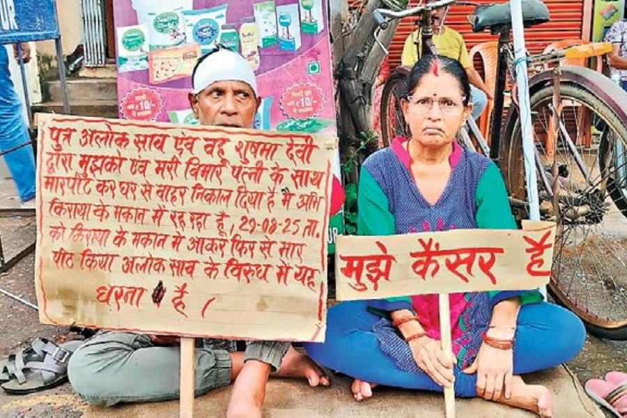 चक्रधरपुर/ पश्चिमी सिंहभूम)।झारखंड के चक्रधरपुर स्थित झुमका मोहल्ला से एक दिल दहला देने वाला मामला सामने आया है। यहां रहने वाले 65 वर्षीय अर्जुन प्रताप साव और उनकी 55 वर्षीय पत्नी शकुंतला देवी, जो कैंसर पीड़ित हैं, अपने ही बेटे आलोक साव और बहू सुषमा की प्रताड़ना से तंग आकर सरेआम बीच चौक में धरने पर बैठ गए। शकुंतला देवी के हाथ में तख्ती थी जिस पर लिखा था मैं कैंसर पीड़ित हूं। यह दृश्य देखकर राहगीरों की आंखें नम हो गईं। अर्जुन साव का कहना है कि उन्होंने अपने बेटे आलोक के लिए पोस्ट ऑफिस रोड पर कपड़े की दुकान खुलवाई थी, जिससे उसे अच्छी आमदनी हो रही है। लेकिन अब वही बेटा आए दिन मारपीट करता है और उन्हें घर से निकाल चुका है। पिछले 8–9 महीनों से दंपती किराए के मकान में रहने को मजबूर हैं। अर्जुन साव ने बताया कि 29 अगस्त को आलोक ने मारपीट कर उनका सिर फोड़ दिया। उन्होंने आरोप लगाया कि कोर्ट ने दोनों बेटों को आदेश दिया था कि वे हर माह माता-पिता को 5000 रुपये दें। छोटा बेटा आशीष आदेश का पालन कर रहा है, लेकिन बड़ा बेटा आलोक न तो आर्थिक मदद करता है, न ही घर में रहने देता है। उल्टा केस दर्ज कराने के बाद आलोक ने अपने ही पिता को डंडों से बेरहमी से पीटा। शकुंतला देवी वर्ष 2021 से कैंसर से पीड़ित हैं और इलाज के लिए उन्हें समय-समय पर मुंबई जाना पड़ता है। शुरुआती दिनों में बेटों ने सहयोग किया, लेकिन अब उन्होंने नाता तोड़ लिया है। दंपती का आरोप है कि पुलिस और प्रशासन से कई बार गुहार लगाने के बावजूद कोई कार्रवाई नहीं हुई। अर्जुन साव और शकुंतला देवी का कहना है कि जब तक उन्हें न्याय नहीं मिलेगा और अपने ही घर में वापस नहीं बसाया जाएगा, वे धरना स्थल से नहीं हटेंगे। इस घटना ने पूरे क्षेत्र में प्रशासन और समाज की संवेदनाओं पर बड़ा सवाल खड़ा कर दिया है।