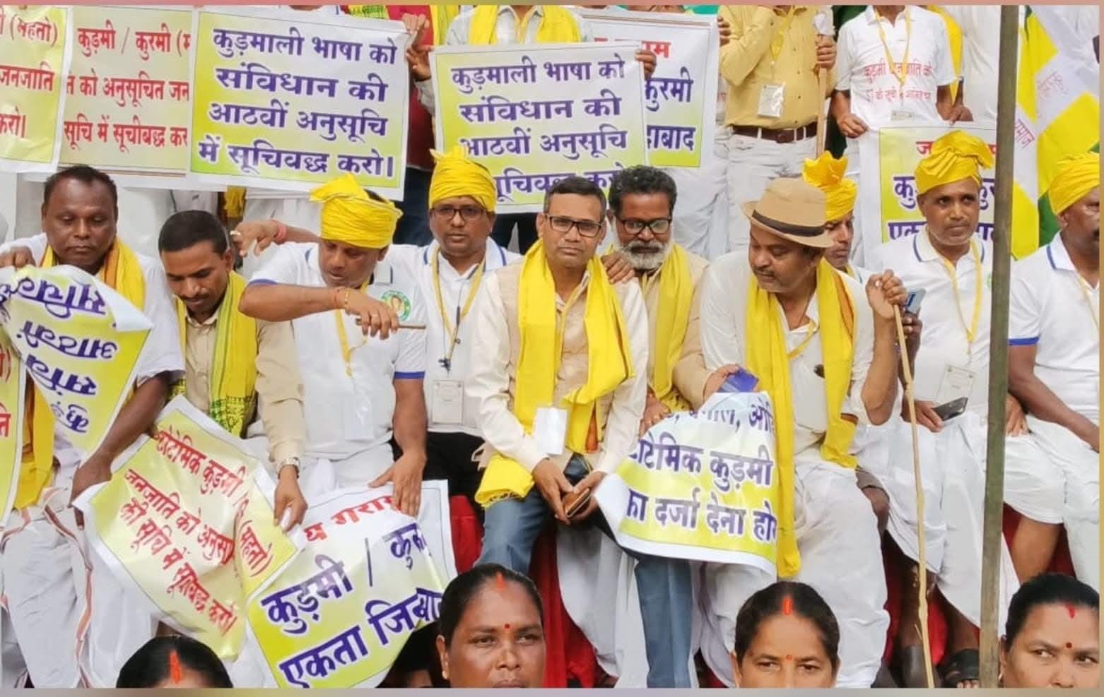 राँची :: कुरमी समाज के लोग शनिवार को राँची व झारखंड के लगभग अन्य जिलों समेत उड़ीसा, बंगाल से अपनी मांगों को लेकर देश की राजधानी दिल्ली में उपस्थिति दर्ज कर बड़ा धरना प्रदर्शन किया, कुरमी समाज के लोग देश के कुल तीन राज्यों से दिल्ली पहुँचे थे। कुरमी समाज के लोगों ने अपनी मुख्य दो माँगों को लेकर धरना प्रदर्शन किया जिसमें प्रथम माँग ये था के इन तीनों राज्यों में कुरमी समाज की आबादी अन्य समाजों (जिन्हें खास आदिवासी का दर्जा सरकार द्वारा प्राप्त हो चुका है) के मुकाबले में कुरमी समाज का आबादी मिलता जुलता है, इसलिये महाधरना में उपस्थित लोगों की पहली प्राथमिकता सरकार से है के कुरमी समाज को आदिवासी का दर्जा मिले, वहीँ दूसरी माँगें, कुरमी को 8 वीं अनुसूची में शामिल करना, यही दो मुख्य माँगों को लेकर देश के तीनों राज्यों से कुरमी समाज के लोग बढ़ चढ़कर केंद्र सरकार व राज्य सरकार को धरना प्रदर्शन कर बड़ा संदेश भेजा है। इस बड़ा धरना प्रदर्शन में कुरमी विकास मोर्चा के केंद्रीय अध्यक्ष आदरणीय शीतल ओहदार जी ने इस महाधरना प्रदर्शन की अध्यक्षता किए। जिसमें कुरमी विकास मोर्चा के केंद्रीय प्रधान महासचिव आदरणीय राजेंद्र महतो, केंद्रीय प्रधान प्रवक्ता संजय लाल महतो, केंद्रीय कार्यकारी अध्यक्ष थानेश्वर महतो, रचिया महतो, महेंद्र महतो, केंद्रीय कोषाध्यक्ष अनिल महतो, केंद्रीय मीडिया प्रभारी शखीचंद महतो,केंद्रीय अध्यक्ष महिला मोर्चा सुषमा देवी, केंद्रीय महासचिव किरण देवी, सरस्वती देवी, केंद्रीय उपाध्यक्ष सावित्री देवी, रांची जिला अध्यक्ष सोनालाल महतो, मुकेश सिंहा,रूपेश महथा, बबलू महतो,रबीता देवी, कंचन रानी, अनीता देवी,रानीलता देवी, प्रिया कुमारी, लालो देवी, कल्पना रानी,रेखा देवी, बसंती देवी, चंद्र भूषण महतो, रीता देवी, सुनीता देवी, ललिता देवी, धनेश्वरी देवी, सोमा महतो, प्रदीप महतो, राजू महतो, संदीप महतो, फुल्को देवी , नेपाल महतो, मिथलेश महतो, अमित महतो, मुकेश महतो आदि सैकड़ों लोग शामिल हुए।