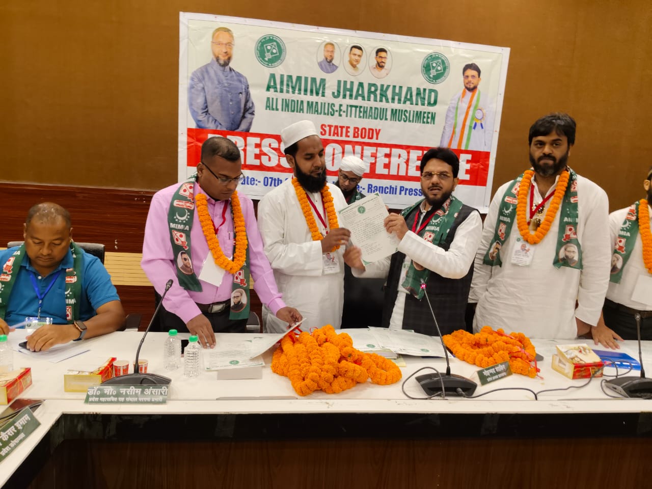 रांची: ऑल इंडिया मजलिस-ए-इत्तेहादुल मुस्लिमीन पार्टी के प्रदेश अध्यक्ष मो शाकिर की अध्यक्षता में रांची स्थित प्रेस क्लब सभागार में प्रदेश स्तरीय एक अहम बैठक आयोजित की गई। जिसमें प्रदेश के नवनियुक्त पदाधिकारी एवं कई जिलाध्यक्ष शामिल हुए। बैठक के दौरान संगठन मजबूती पर गंभीर चर्चा किया गया। इस दौरान प्रदेश अध्यक्ष मो शाकिर ने बताया कि एमआईएम एक खुद मुख्तार नेता पैदा करता है। जो अपने क्षेत्र, अपने लोग, अपने समाज के लिए लड़ाई लड़ सकते हैं। समाज के दबे कुचले लोगों की हक़ की लड़ाई लड़ सकते है। आगे बताया कि केंद्रीय अध्यक्ष के आदेशानुसार नयी टीम की गठन की गई है। मौके पर प्रदेश महासचिव डॉ नसीम अंसारी, इंतेखाब आलम, महताब आलम, रशीद हुसैन, सालिक जावेद, मो शमीम, अब्दुल लातिफ अंसारी, मौलाना मोकर्रम मदनी, क़ाज़ी अब्दुल मुकीत, शीमा प्रवीण, शिशिर लकड़ा, अफजल सिद्दीकी, सोयेब कलम, सरफराज आलम, अरशद अय्युब, एजाज़ खान, अब्दुल हालिम सहित अन्य मौजूद थे।