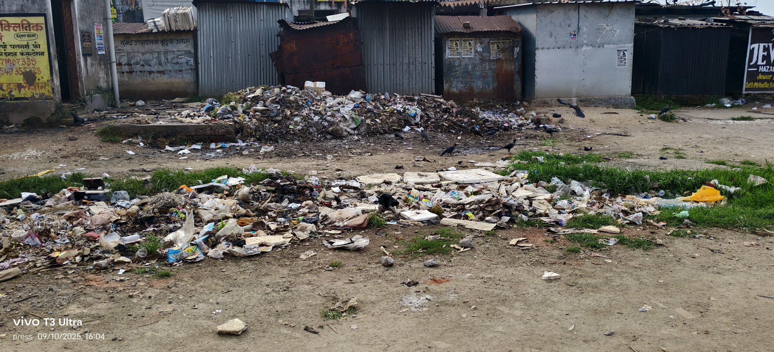 एनएच-522 के किनारे स्थित तालाब के आसपास फैली गंदगी श्रद्धालुओं के लिए सिरदर्द बनेगी पूजा पंडालों के थोड़ा सा आगे कचरे का ढेर लगा है, और नियमित सफाई न होने से दुर्गंध फैली हुई है। इससे वातावरण अशुद्ध हो रहा है और धार्मिक माहौल में खलल पड़ रहा है।