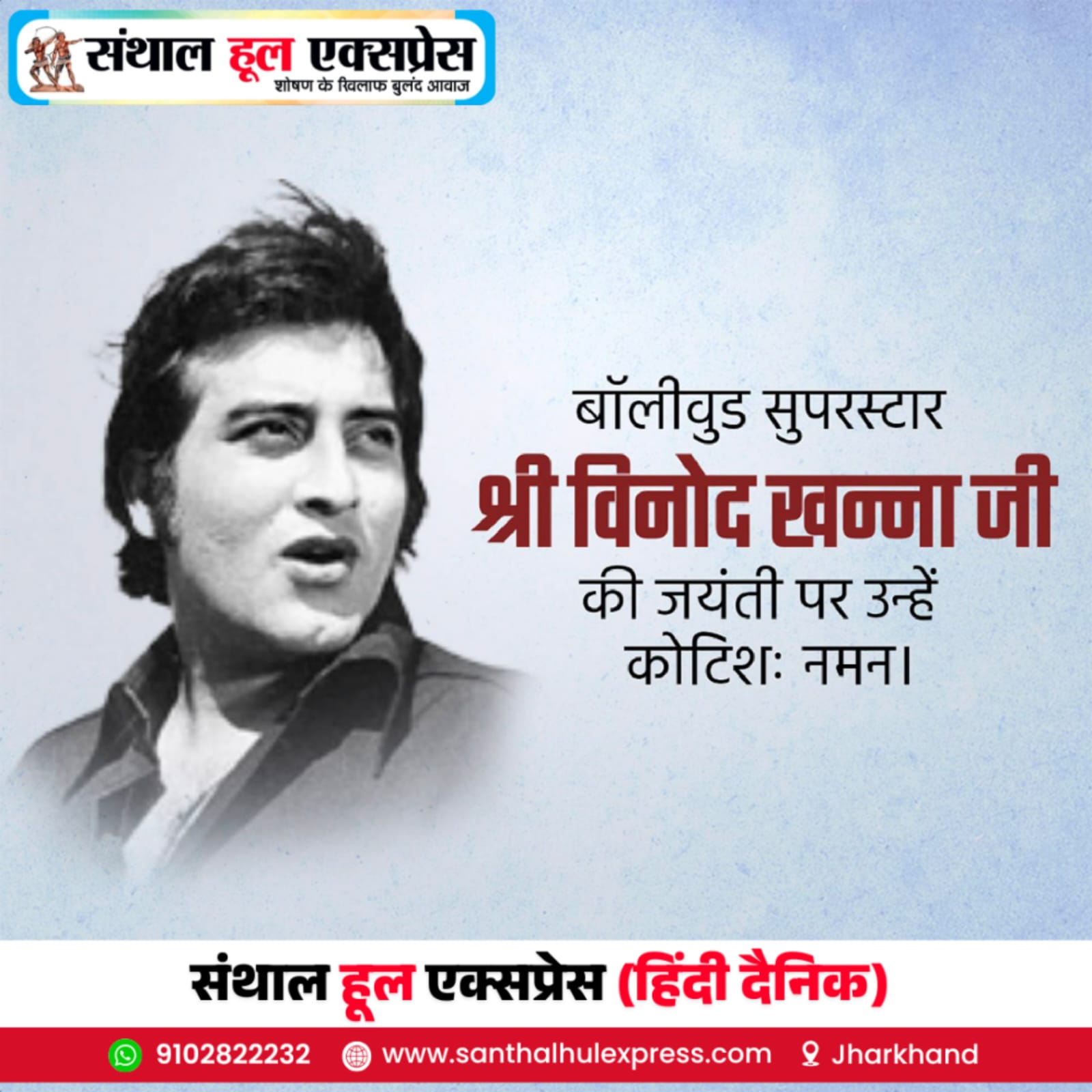 भारतीय सिनेमा के इतिहास में कुछ नाम ऐसे दर्ज हैं जो न केवल अपनी अदाकारी से बल्कि अपने व्यक्तित्व, गरिमा और जीवन मूल्यों से भी दर्शकों के दिलों में अमिट छाप छोड़ गए। उन्हीं में से एक हैं बॉलीवुड सुपरस्टार विनोद खन्ना जी, जिनकी जयंती के अवसर पर आज पूरा देश उन्हें श्रद्धा और सम्मान के साथ याद कर रहा है।