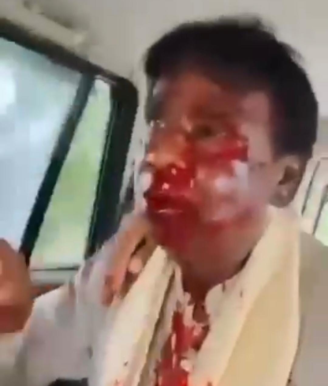 हमले के बाद सामने आई तस्वीरों में भाजपा सांसद खून से लथपथ एक गाड़ी में बैठे हुए दिखाई दिए। उनके चेहरे से लगातार खून बहता हुआ दिखा। उनका सफेद कुर्ता और गमछा भी खून से लाल हो गया। वे रूमाल से बार-बार अपने चेहरे को पोंछते हुए दिखाई दिए।