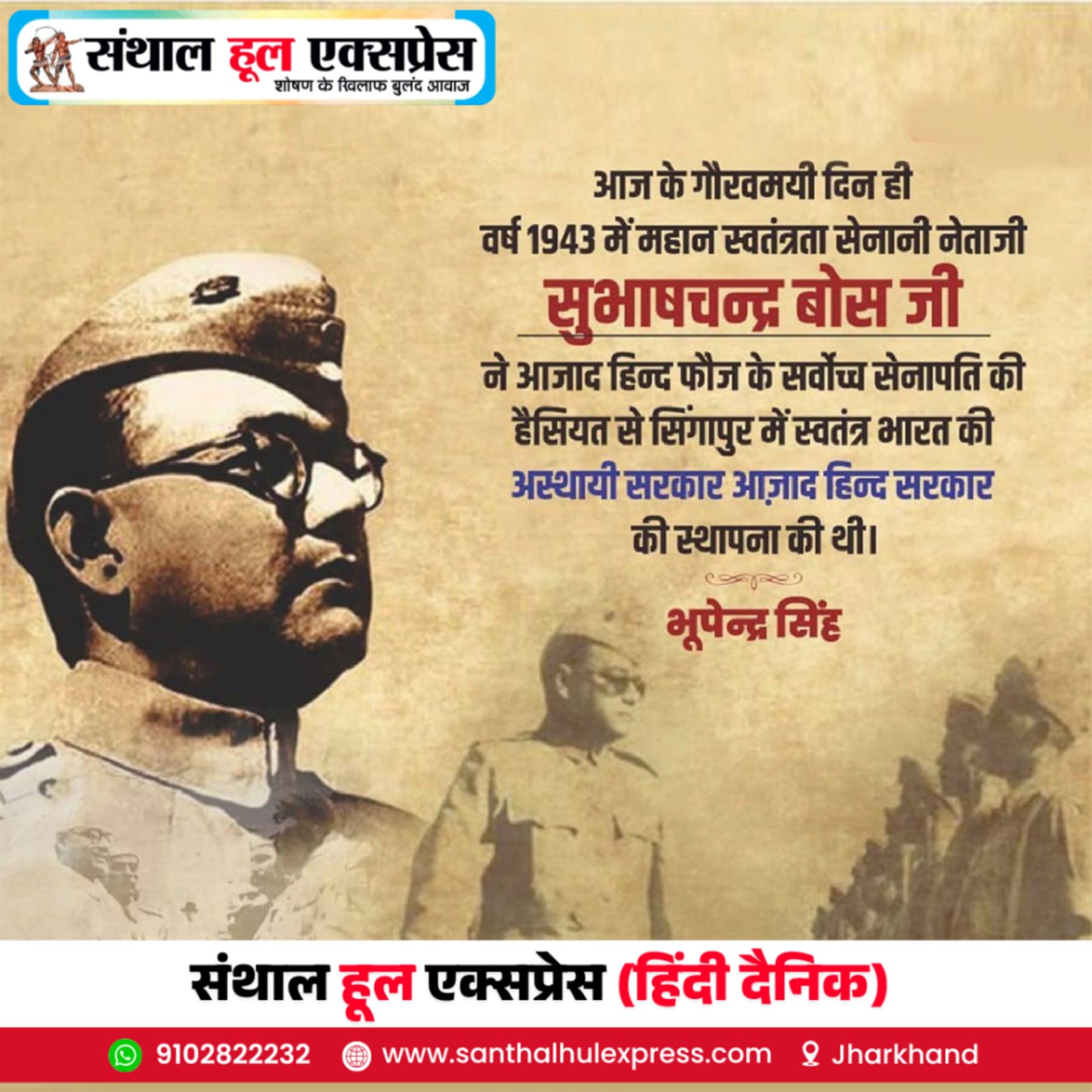 рдЖрдЬ, 21 рдЕрдХреНрддреВрдмрд░ рдХреЛ рджреЗрд╢рднрд░ рдореЗрдВ рдиреЗрддрд╛рдЬреА рдХреЗ рдЗрд╕ рдРрддрд┐рд╣рд╛рд╕рд┐рдХ рдХрд╛рд░реНрдп рдХреЛ рдпрд╛рдж рдХрд░рддреЗ рд╣реБрдП рдЙрдиреНрд╣реЗрдВ рд╢реНрд░рджреНрдзрд╛рдВрдЬрд▓рд┐ рдЕрд░реНрдкрд┐рдд рдХреА рдЬрд╛ рд░рд╣реА рд╣реИред