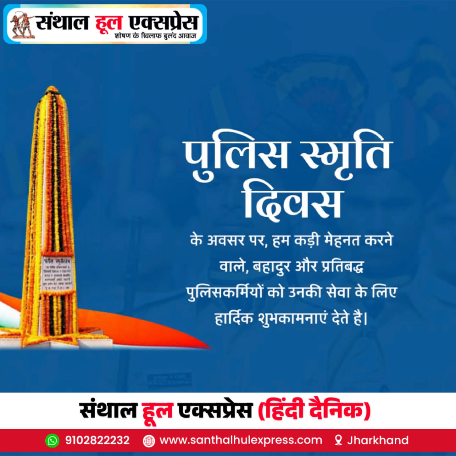 рдЖрдЬ рджреЗрд╢рднрд░ рдореЗрдВ тАЬрдкреБрд▓рд┐рд╕ рд╕реНрдореГрддрд┐ рджрд┐рд╡рд╕тАЭ (Police Commemoration Day) рдмрдбрд╝реЗ рд╣реА рд╢реНрд░рджреНрдзрд╛ рдФрд░ рд╕рдореНрдорд╛рди рдХреЗ рд╕рд╛рде рдордирд╛рдпрд╛ рдЧрдпрд╛ред рдпрд╣ рджрд┐рди рдЙрди рд╡реАрд░ рдкреБрд▓рд┐рд╕рдХрд░реНрдорд┐рдпреЛрдВ рдХреА рд╕реНрдореГрддрд┐ рдХреЛ рд╕рдорд░реНрдкрд┐рдд рд╣реИ рдЬрд┐рдиреНрд╣реЛрдВрдиреЗ рд░рд╛рд╖реНрдЯреНрд░ рдХреА рд╕реБрд░рдХреНрд╖рд╛, рд╢рд╛рдВрддрд┐ рдФрд░ рдЬрдирд╕реЗрд╡рд╛ рдХреЗ рд▓рд┐рдП рдЕрдкрдиреЗ рдкреНрд░рд╛рдг рдиреНрдпреМрдЫрд╛рд╡рд░ рдХрд░ рджрд┐рдПред
