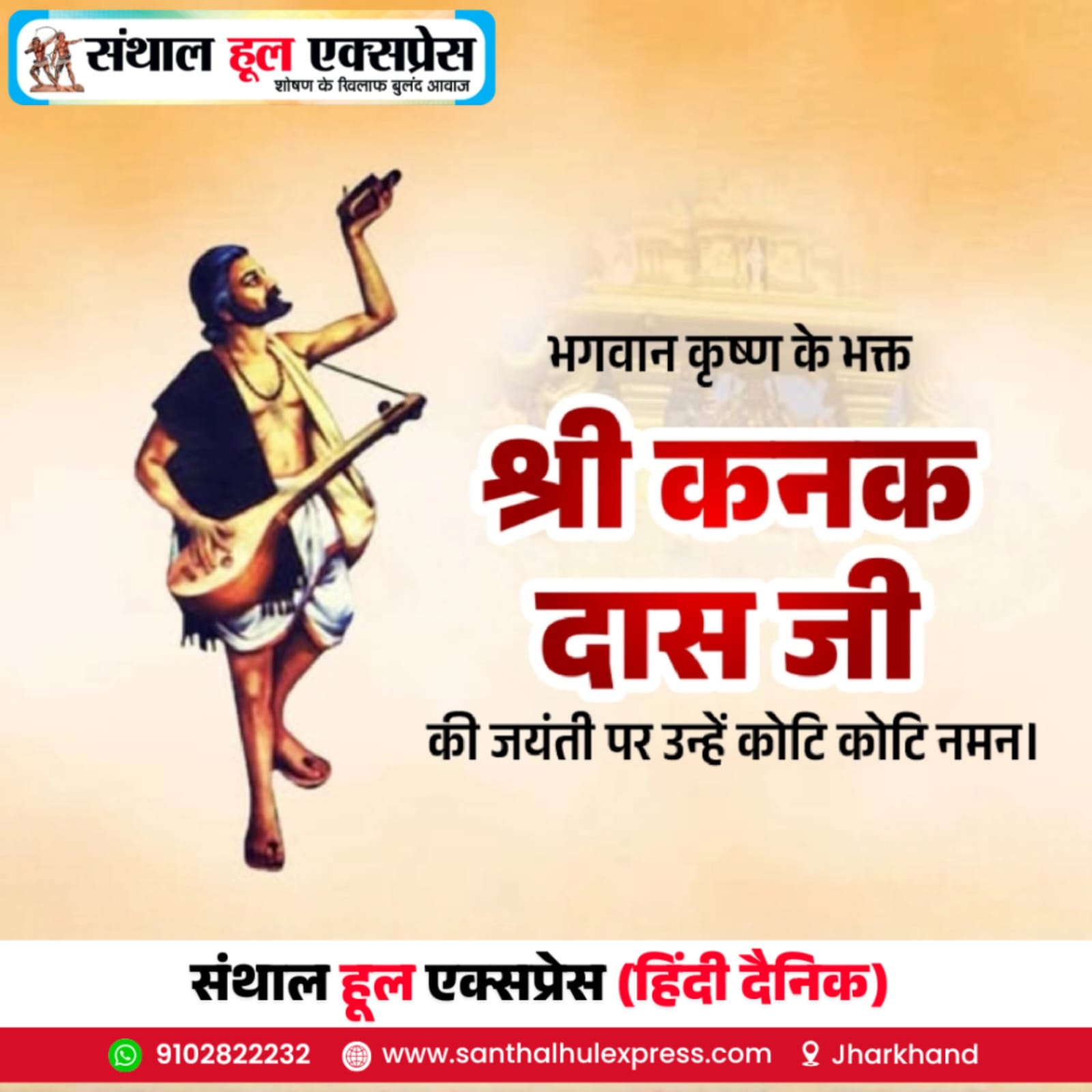 इस अवसर पर संथाल हूल एक्सप्रेस (हिंदी दैनिक) परिवार ने संत कनकदास जी की जयंती पर विनम्र श्रद्धासुमन अर्पित करते हुए सभी को उनके बताये मार्ग पर चलने का संकल्प लेने की अपील की है।