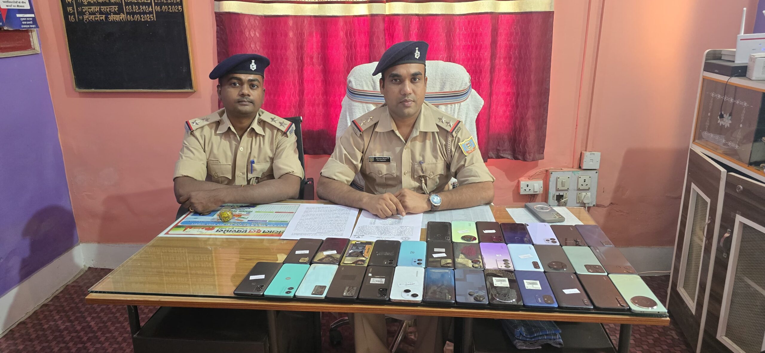 पुलिस द्वारा बरामद मोबाइलों में विभिन्न कंपनियों के कुल 32 फोन शामिल हैं —