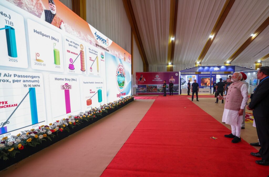 प्रदर्शनी में उभरते विकास के आंकड़े प्रदर्शनी में प्रदर्शित आंकड़ों के अनुसार, उत्तराखंड ने पर्यटन और बुनियादी ढांचे के क्षेत्र में उल्लेखनीय प्रगति की है। राज्य में हवाई यात्रियों की संख्या में 2008-09 के 2 लाख से बढ़कर 2025 में 15-16 लाख तक 99 गुना वृद्धि हुई है। इसके अलावा, 18 नए हेलीपैड्स के निर्माण से हिमालयी क्षेत्रों में दैनिक उड़ानों की संख्या 15 गुना बढ़ गई है, जो दूरस्थ क्षेत्रों तक कनेक्टिविटी को मजबूत करने में सहायक सिद्ध हो रही है। इन आंकड़ों से राज्य के पर्यटन और आर्थिक विकास में आए उछाल का पता चलता है।