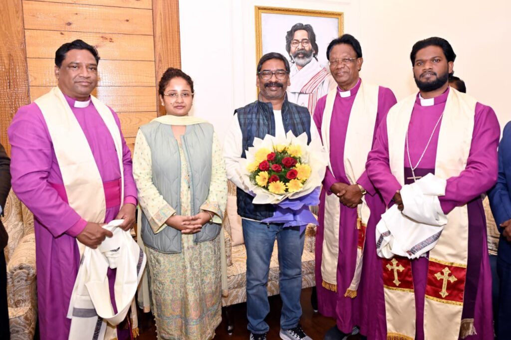 मुख्यमंत्री कार्यालय की ओर से सोशल मीडिया प्लेटफॉर्म ‘एक्स’ पर जारी तस्वीरों में मुख्यमंत्री और विधायक कल्पना सोरेन को चर्च प्रतिनिधियों के साथ सौहार्दपूर्ण माहौल में बातचीत करते देखा जा सकता है। पोस्ट में कहा गया, “मुख्यमंत्री श्री @HemantSorenJMM एवं विधायक श्रीमती @JMMKalpanaSoren से जीईएल चर्च, एनडब्ल्यू जीईएल चर्च, सीएनआई चर्च एवं पेंटीकॉस्टल चर्च के पुरोहित तथा यूथ लीडर्स ने शिष्टाचार भेंट कर क्रिसमस की बधाई दी। #MerryChristmas #JharkhandAt25”