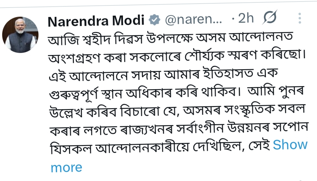 स्वाहिद दिवस पर प्रधानमंत्री मोदी का असम के शहीदों को भावपूर्ण नमन, असमिया में किया पोस्ट